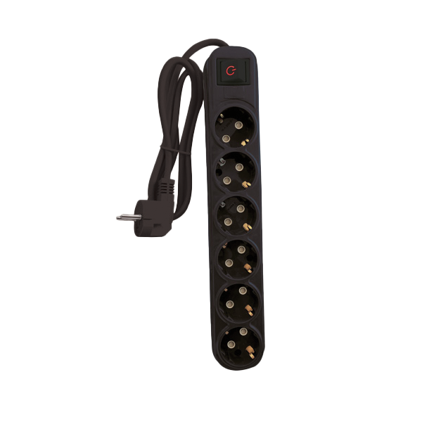 MULTIPLUG SIXFOLD 5M H05VV-F 3G1.5MM2, BLACK