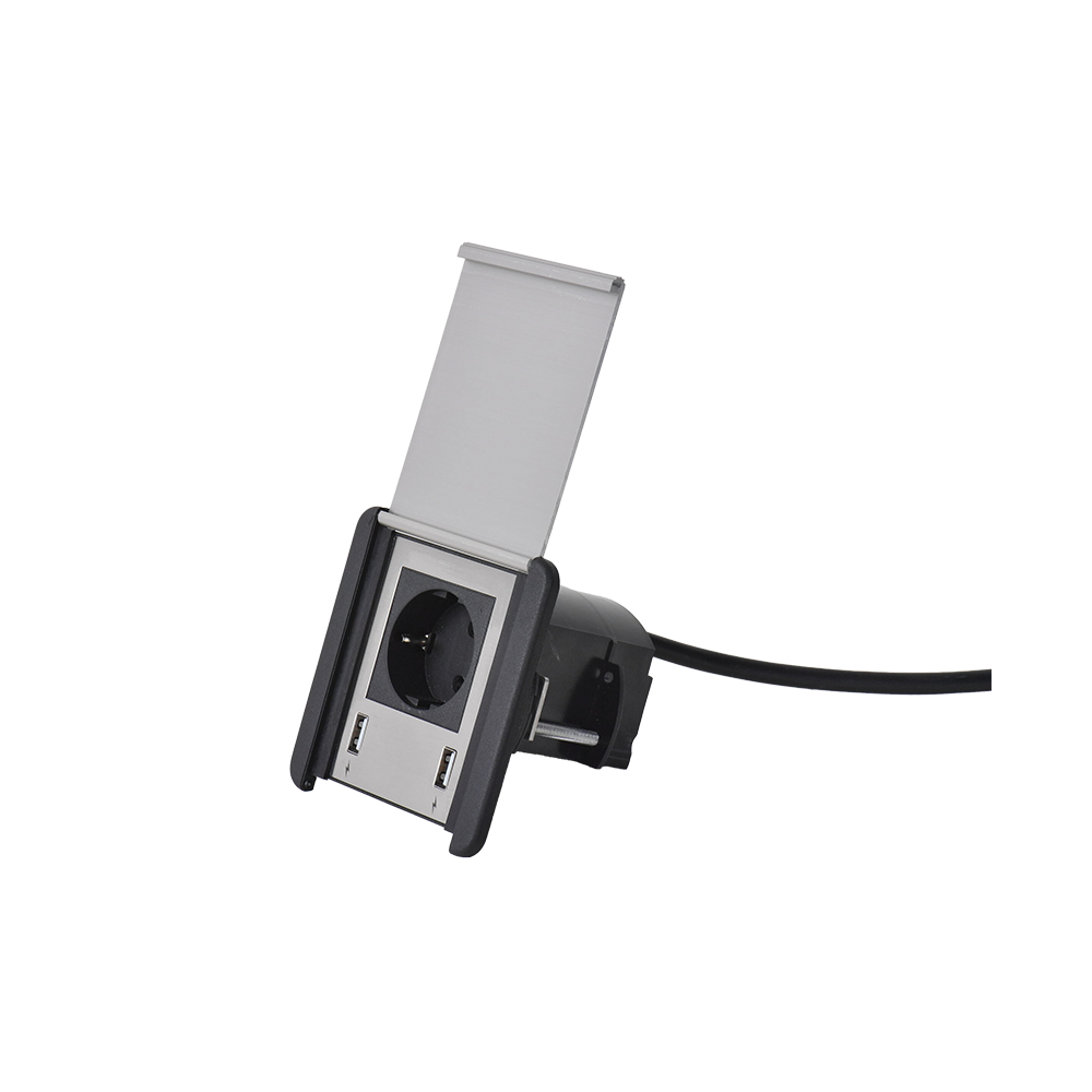 POP UP 1xSHUKO SOCKET+ 1xUSB A/C 20W, BLACK/INOX